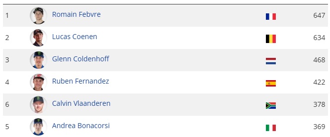 1. Lucas Coenen (BEL, KTM), 50 pontos;